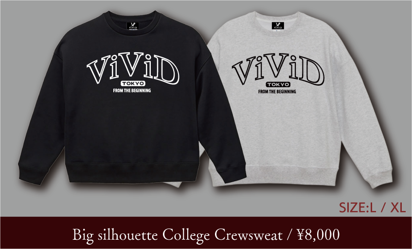 ViViDのロゴを人気のカレッジデザインに仕上げた、日常でも使いやすいスウェット。